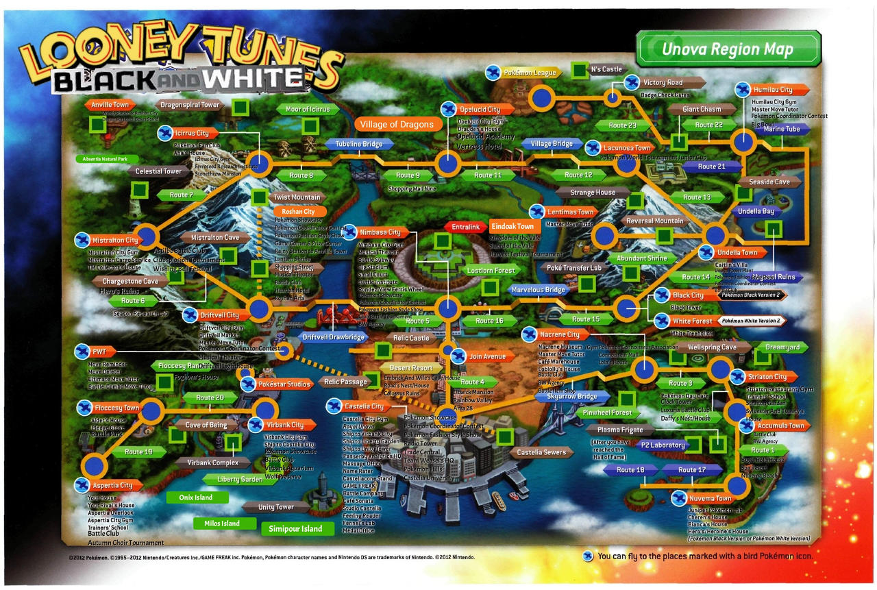 Looney Tunes Black And White: Unova Map by PokemonToonPatrolFan on